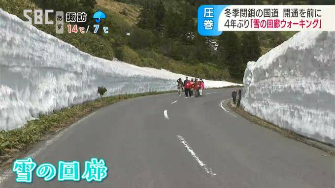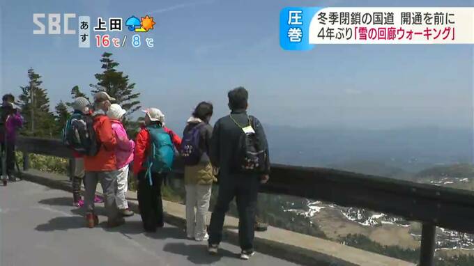長野・群馬県境の志賀草津高原ルートが26日に開通するのを前に、「雪の回廊」を歩いて楽しむイベントが開かれました。