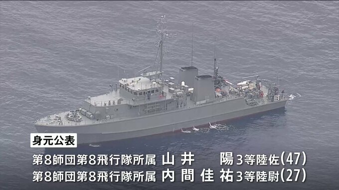 沖縄県の宮古島周辺で陸上自衛隊のヘリコプターが消息を絶った事故で、防衛省は先ほど、これまでに死亡を確認した5人のうち2人の氏名をあらたに公表しました。防衛省によりますと、これまでに海上自衛隊のダイバー…