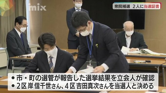 2区が岸信千世さん、4区が吉田真次さんを当選人と決めました。