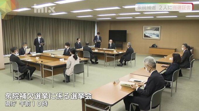 23日に投票が行われた衆議院山口2区・4区の補欠選挙で当選した2陣営に、当選証書が手渡されました。