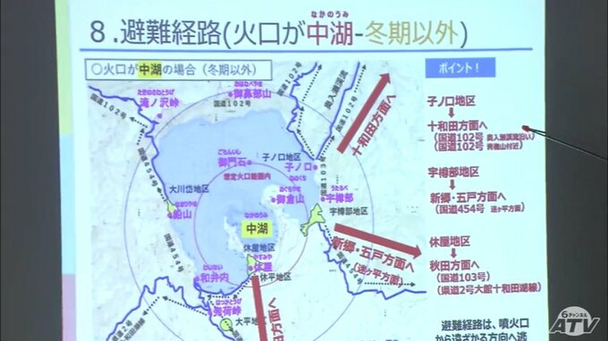 青森県と秋田県の境にある活火山「十和田火山」についてです。小規模な噴火が発生した際の避難計画についての住民説明会が開かれ、住民たちが真剣な表情で避難の手順を確認しました。「十和田火山」は「常時観測火…