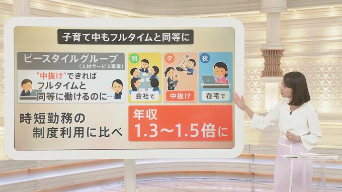人材サービス事業の「ビースタイルグループ」では、子育て中もフルタイムと同等の給料がもらえるというシステムを適用。