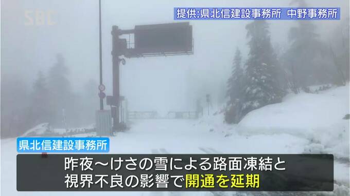 冬の間、閉鎖されていた、長野県山ノ内町と群馬県草津町を結ぶ志賀草津高原ルートはきょう(26日)開通が予定されていましたが、路面凍結と視界不良のため延期されました。■大塚記者「開通予定だった志賀草津高原…