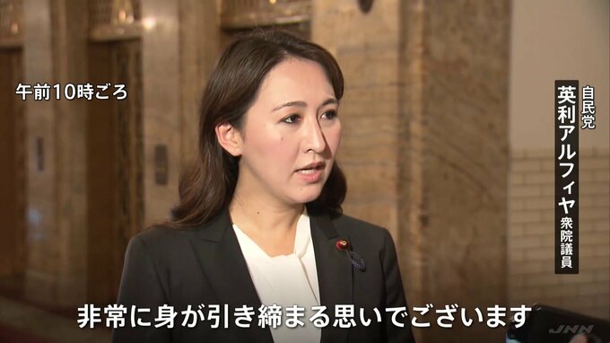 自民党 英利アルフィヤ 衆院議員「非常に身が引き締まる思いでございます」23日に行われた衆参5つの補欠選挙のうち、衆議院・千葉5区で当選した自民党の英利アルフィヤ氏が初めて登院しました。英利氏は「自民党…
