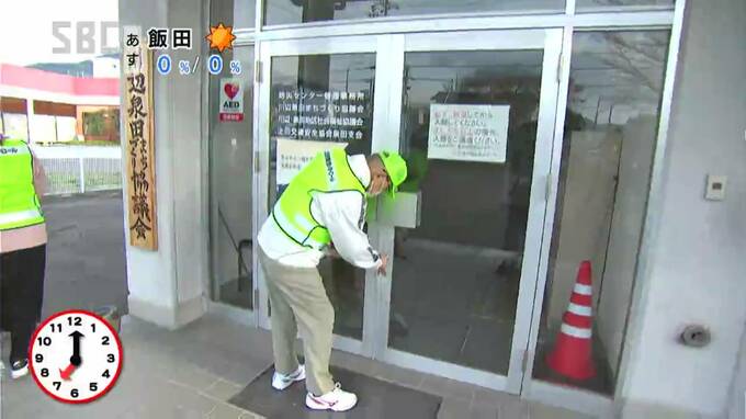 朝7時。上田市福田の地区防災センター。