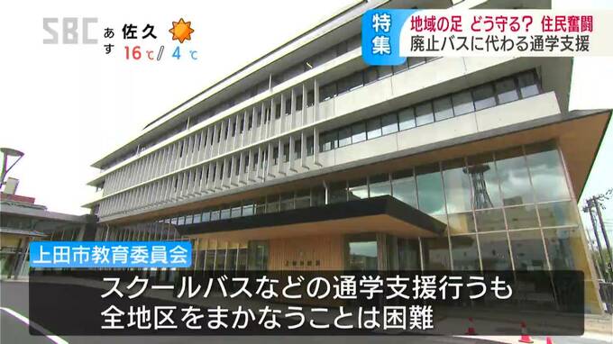市の教育委員会では、国が示す通学距離の目安を基本に、スクールバス運行などの通学支援を行っていますが、全ての地区をまかなうことは難しいのが現状です。