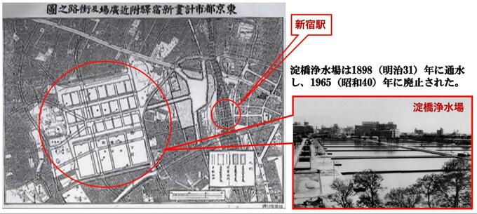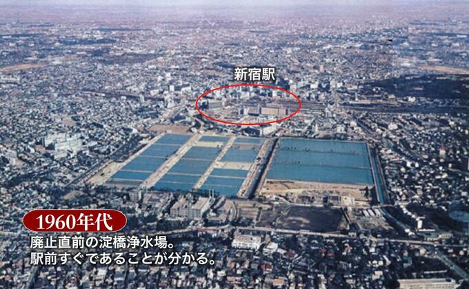 新宿西口、降りて目の前は見渡す限りの「人工池」だったわけです。驚くのはその浄水場が1960年代までずっと浄水場のままであり続けていたこと。
