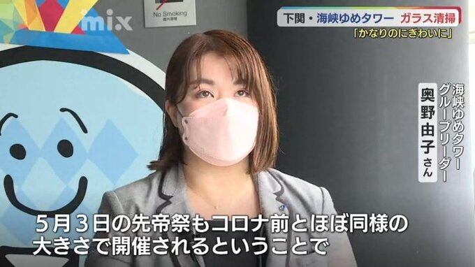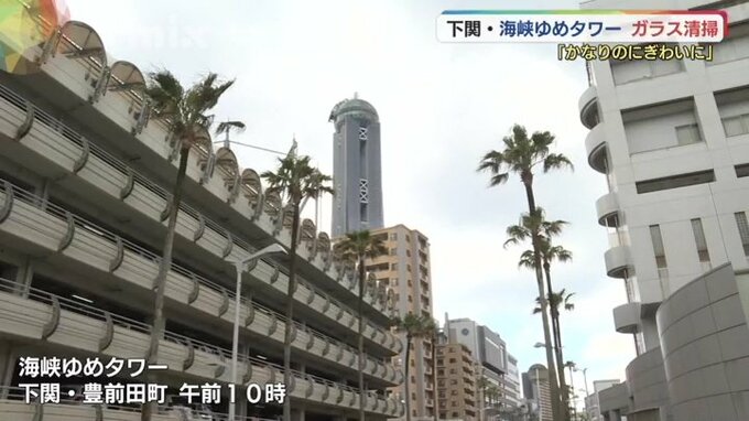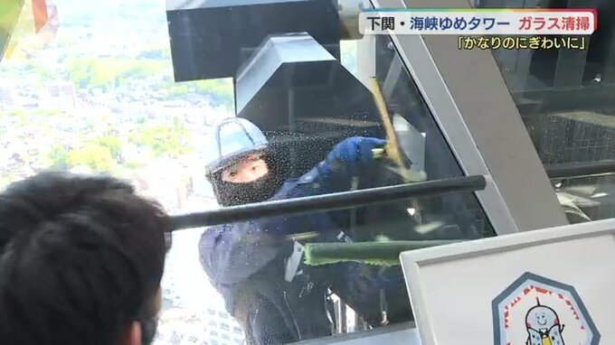 大型連休に観光客を迎え入れる準備は万全です。山口県下関市の海峡ゆめタワーで26日、窓ガラスの清掃が行われました。