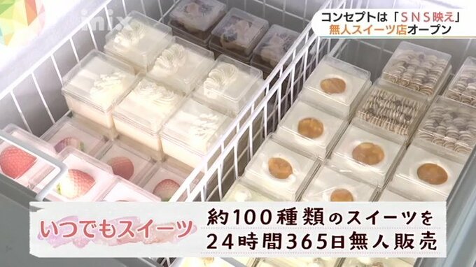 およそ100種類のスイーツが、24時間365日、無人で販売されています。