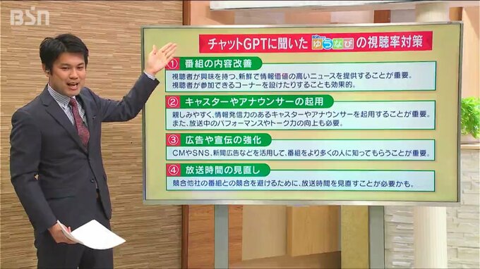 にわかに“時の人”になっている『チャットGPT』に、「平日夕方のニュース番組の視聴率を上げる“秘策”について聞いてみました。