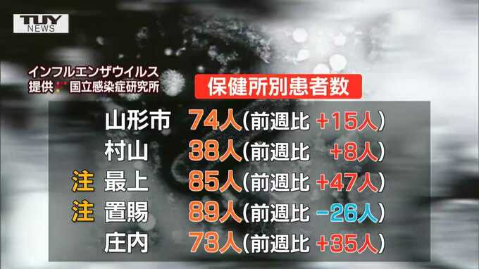 山形県内のインフルエンザ患者数は前の週に比べ増加し、最上と置賜で注意報レベルとなっています。県衛生研究所によりますと、今月23日までの1週間で定点医療機関から報告された県内のインフルエンザの患者数は、…