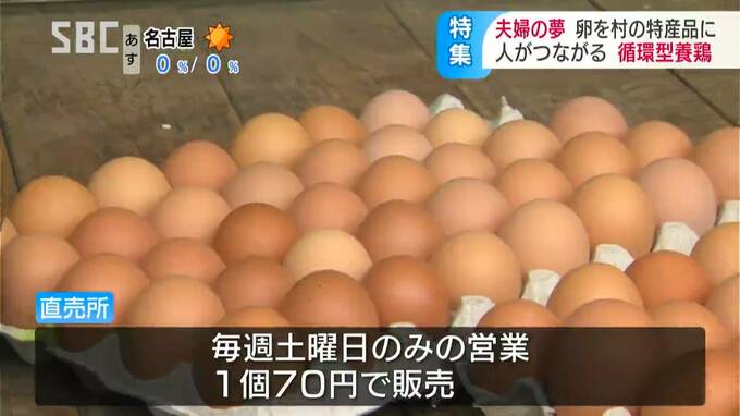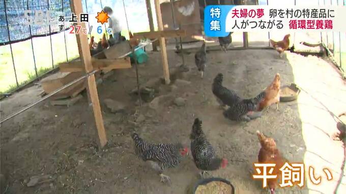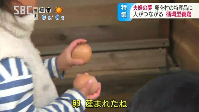卵は、黄身の色が薄く甘味があるのが特徴といい、佐久間さん夫婦は、村の新たな特産品になればと考えています。