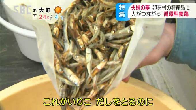 ■佐久間さん「これがいりこですね これが本当に(鶏の)大好物ですね 動物たんぱくも必要でして これを食べるといい卵を産みます」