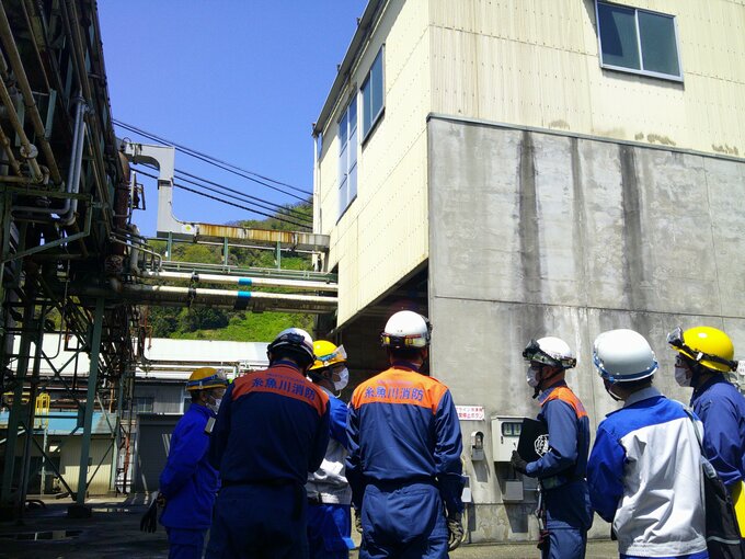 4月に入り立て続けに2度の火事が発生した、新潟県糸魚川市の化学工場「デンカ青海工場」で消防による緊急の立ち入り検査が27日行われました。対象となる76の施設のうち27日は38施設で検査が行われ、そのうち13か所で軽微な改善指導を行いました。