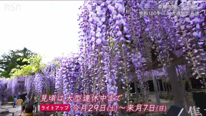 【北方文化博物館 佐藤隆男 副館長】「美しい香りのいい藤が咲くようにと、思いを込めて一生懸命環境を整えていますので、(皆さんには)藤を見て気持ちを和らげて心をいやしてもらいたい」