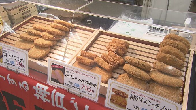 ネット通販で「5年待ち」という人気のコロッケも登場。大きな神戸牛の角切りが、食欲をそそります。