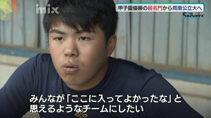 「まったく注目されていない大学から全国に出て、試合に勝つっていうのが、やっぱりものすごく僕はかっこいいことだなって。イチローさんのことばを借りるんですけど、『楽な道かしんどい道、どっちか2つがあらわれた時にしんどい道を選ぶ人でありなさい』と言ってもらって、ここに来ることが自分は正しいなって感じたので、ここに行きたいですって言いました」