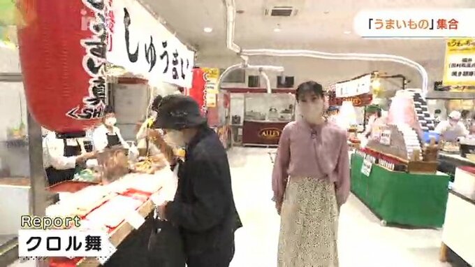 「きょうから始まった全国うまいもの大会に来ています。食欲をそそるいい香りが漂ってきています。何を食べるか迷ってしまいそうです」