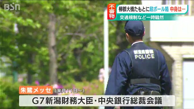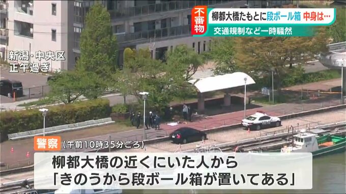 新潟市中央区の柳都大橋の近くで、27日午前に「不審な段ボール箱」が見つかり、辺りは一時、騒然としました。