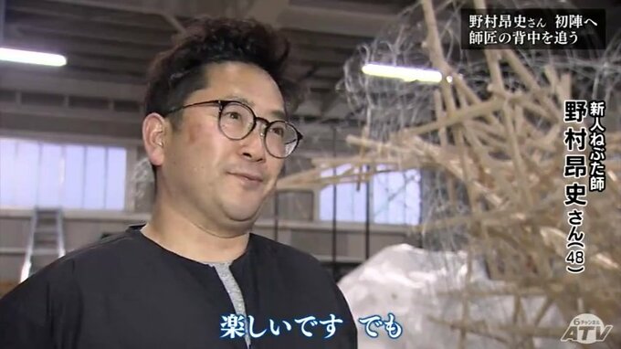 自分が手がけた大型ねぶたで観客に感動を届ける。その夢をたぐりよせたのが新人ねぶた師の野村昂史さん48歳です。