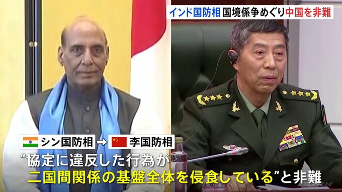 国境地帯の領有権を争う中国とインドは国防相会談を開き、インドは中国側が「二国間関係の基盤全体を侵食している」と非難しました。インドのシン国防相は27日、首都・ニューデリーで開かれる、中国とロシアが主導…