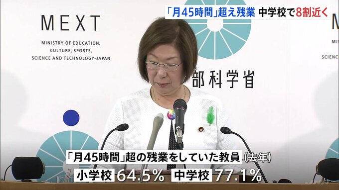 文部科学省が小中学校の教員の働き方に関して調査を行ったところ、国が定めた上限の「月45時間」を超える残業をしていた教員の割合が中学校で8割近くに上っていたことがわかりました。依然として長時間勤務が行わ…