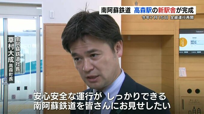南阿蘇鉄道 草村大成 社長(高森町長)「(全線開通する)15日以降も熊本地震前と変わらず、全国の皆さんから愛され、地元の皆さんから愛される、安心安全な運行がしっかりできる南阿蘇鉄道を皆さんにお見せしたい」