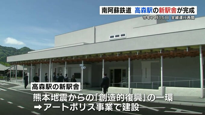 今年7月15日に全線で運行を再開するのを前に、南阿蘇鉄道・高森駅の新しい駅舎が完成しました。