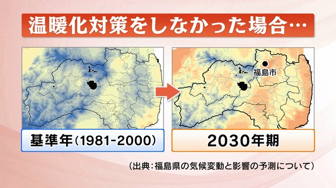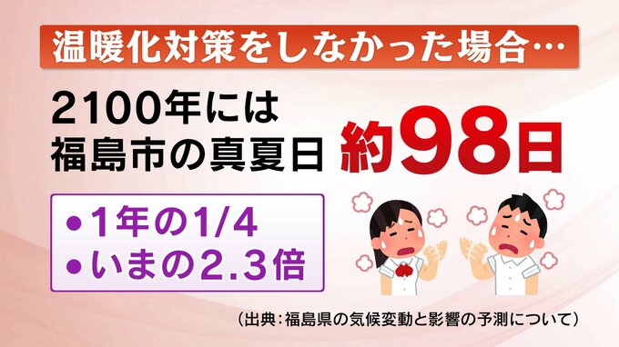 データをまとめた福島大学の川越清樹教授は、福島市の真夏日が1年のおよそ4分の1にあたる98日、いまの2.3倍に増えると説明しています。こうなると、産業への影響も深刻になります。