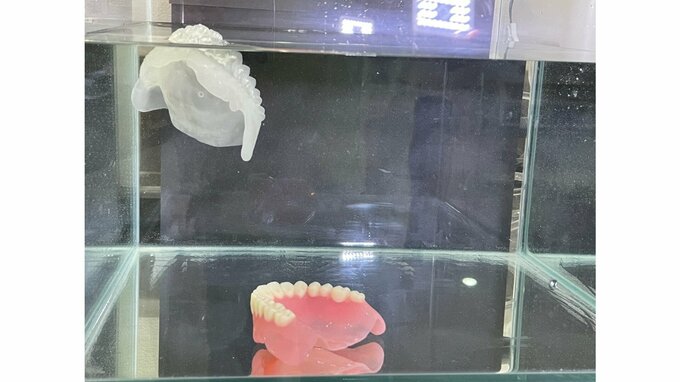 「やわらかい素材で歯茎に負担をかけず、ハードな使用でも壊れにくいというのも目指しました。素材探しから、水に浮かぶ構造をソフトウェアで設計して、約3か月くらい。とうとう、すっぽんしてもぷかぷか浮く『マウスピース型の入れ歯』を完成させました」