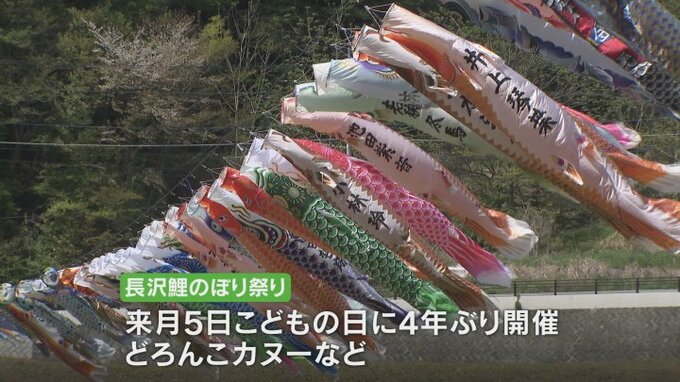 また5月5日、こどもの日にはコロナ禍で3年間中止されていた「長沢鯉のぼり祭り」が4年ぶりに開かれ、おなじみの田んぼを使ったどろんこカヌーや鯉のつかみどりが行われます。