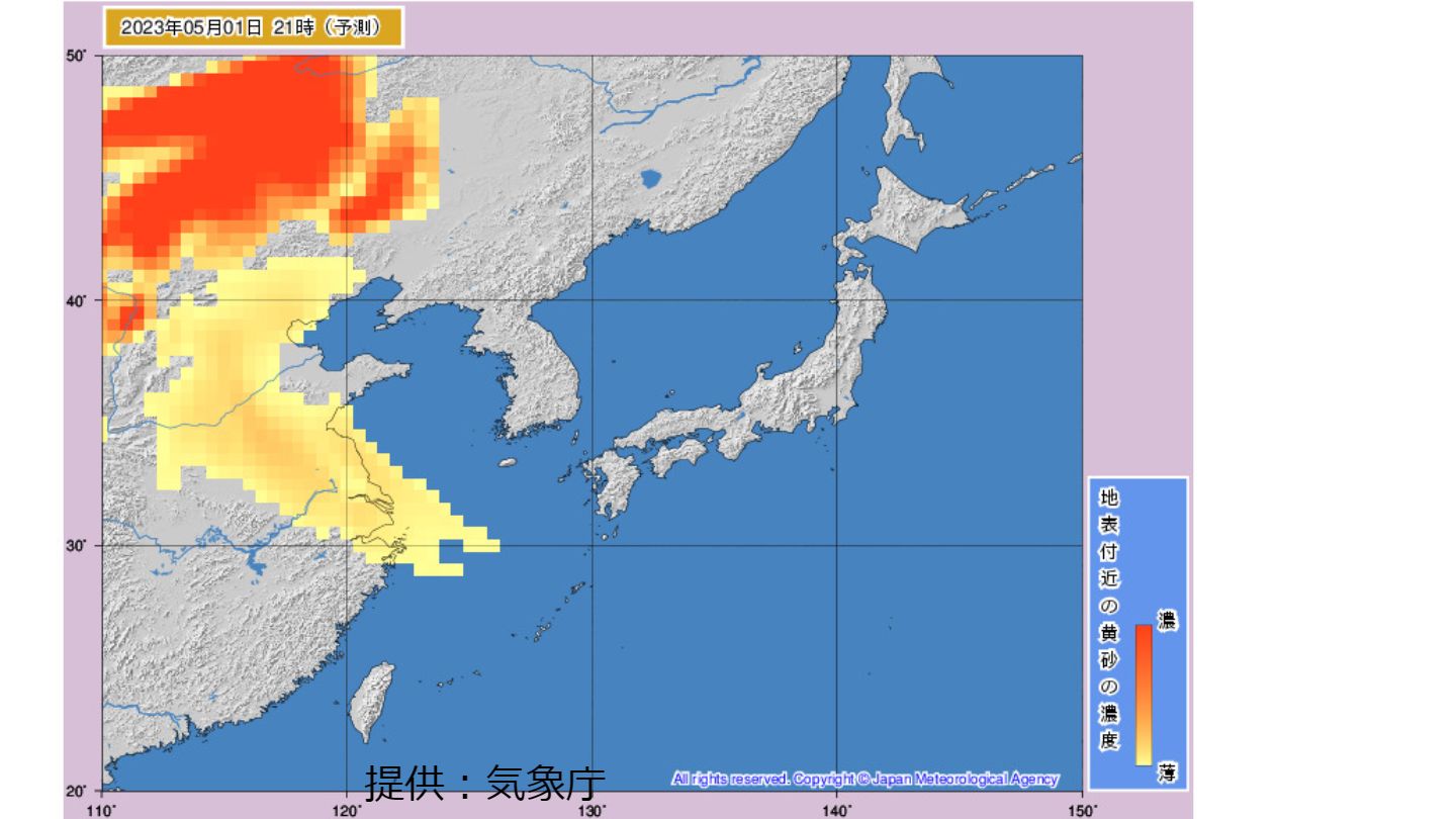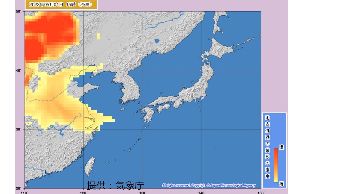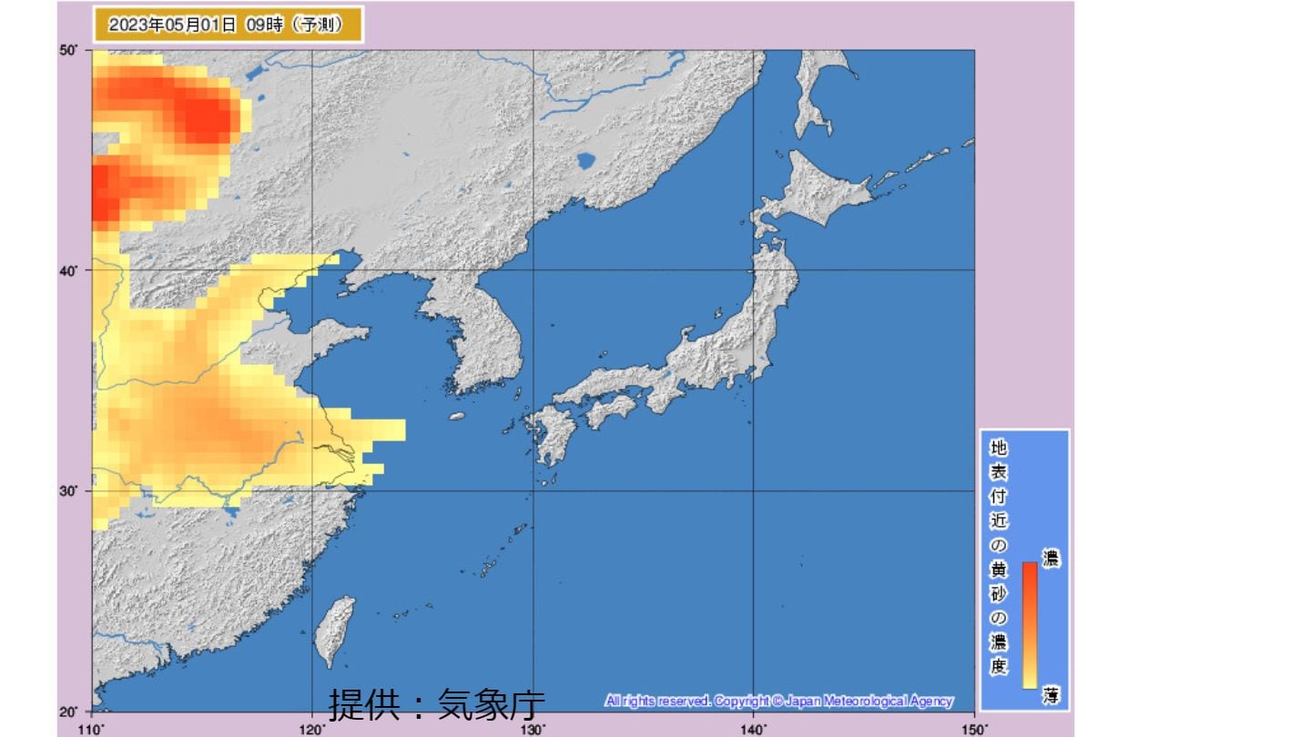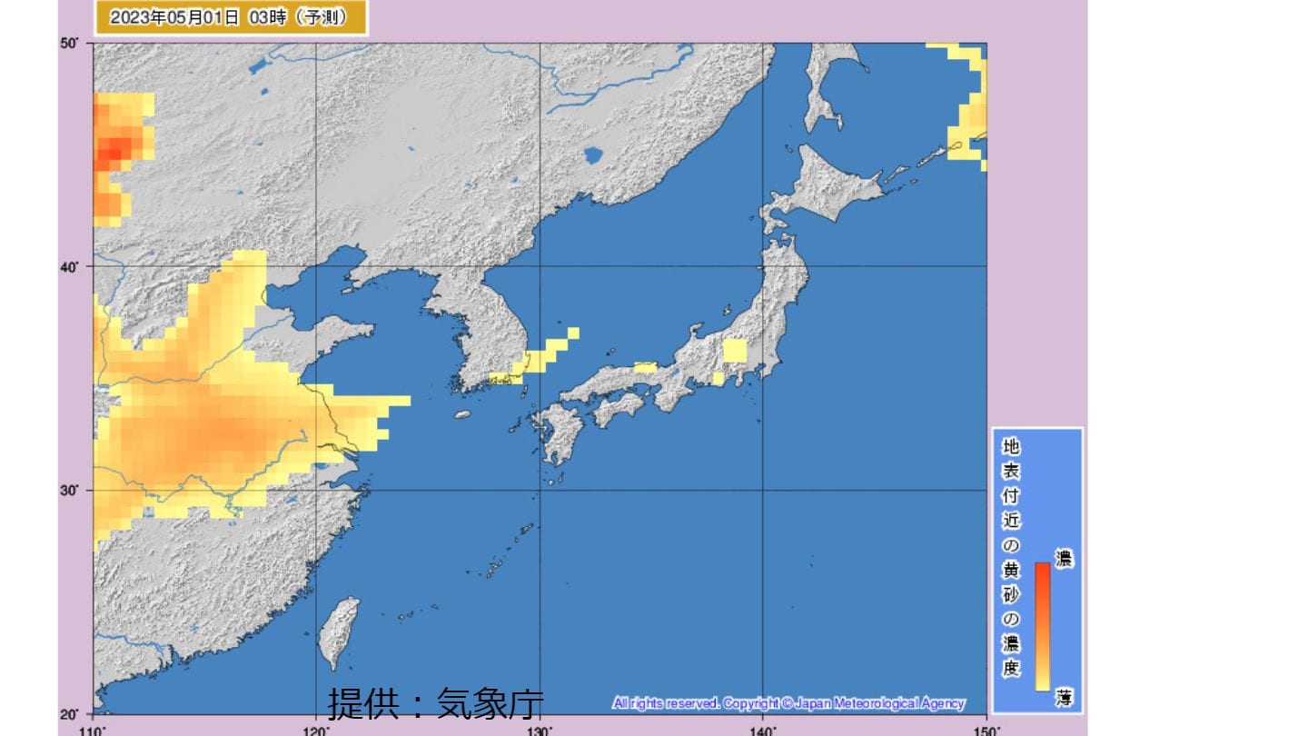 気象庁の黄砂解析予測図によりますと、黄砂はあす(4月29日)夜に西日本に到達するとみられていて、中国地方・四国地方を30日の未明に通り抜け、30日の午後には北海道・北東北を飛来する予測となっています。
