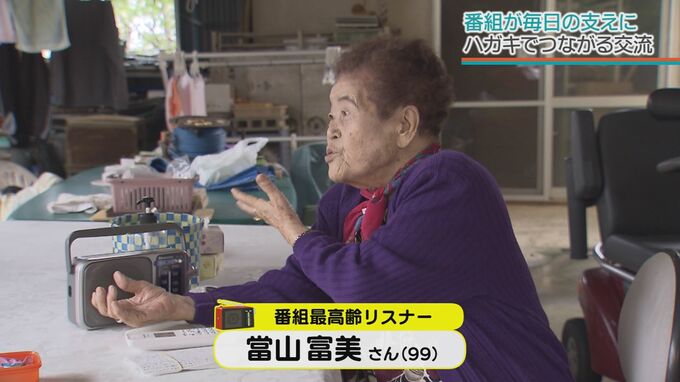 トミさんは、97歳のカジマヤーを過ぎてハガキを出し始め、今では名物リスナーに。パーソナリティからも家族のように慕われ、メッセージが読まれると、優しい笑顔で耳を傾けます。