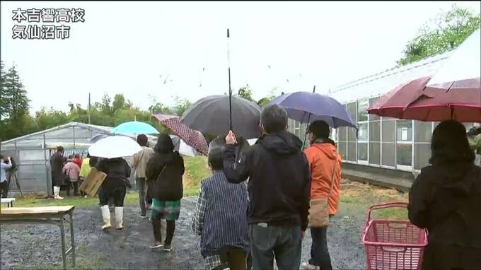 気仙沼市の本吉響高校で生徒たちが丹精込めて育てた野菜の苗などの即売会が30日開かれ大勢の人が買い求めました。
