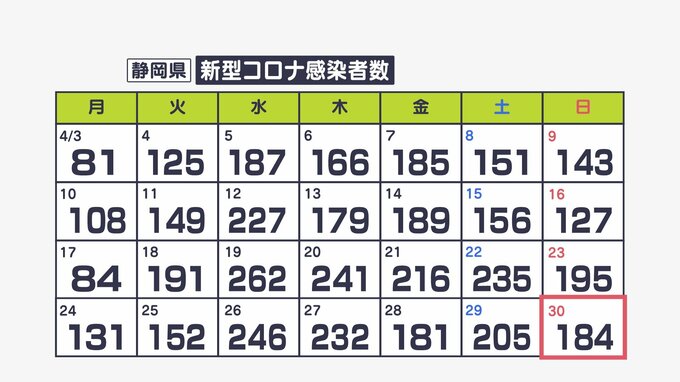 静岡県内では4月30日、新たに184人が新型コロナウイルスに感染したことが分かりました。