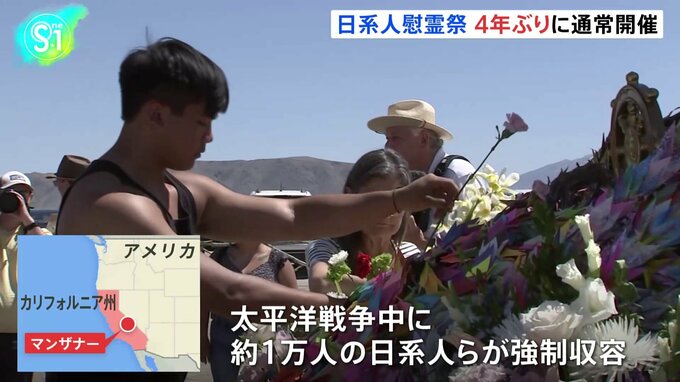 太平洋戦争中のアメリカで強制収容された日系人の苦難をしのぶ慰霊祭が、4年ぶりに通常開催されました。記者「ここマンザナーで慰霊祭が対面で開催されるのは4年ぶりです。収容所の跡地に、およそ1000人が集まって…