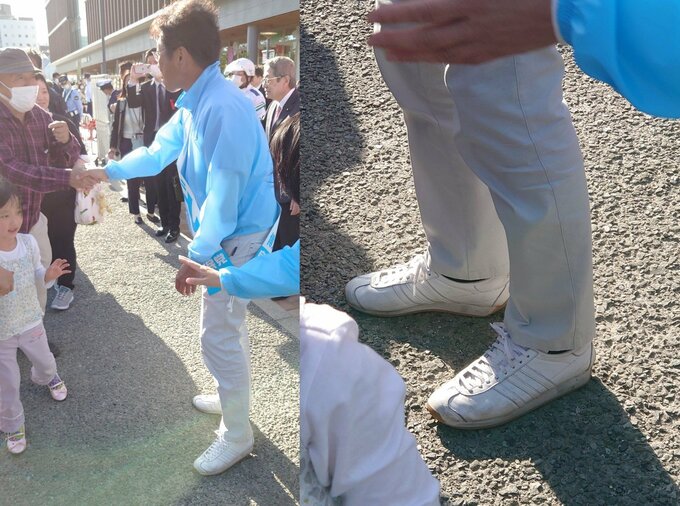 一方、門氏の応援には選挙戦最終日に岸田総理が2回目の応援に入り「門博文をよろしくお願いします」と声を張り上げた。総理の演説後、会場では支援者一人一人とグータッチする日焼けした門氏の姿が。当初、「真っ白」と指摘されたスニーカーは薄汚れていて、選挙戦の激しさを物語っていた。