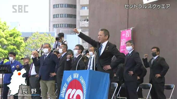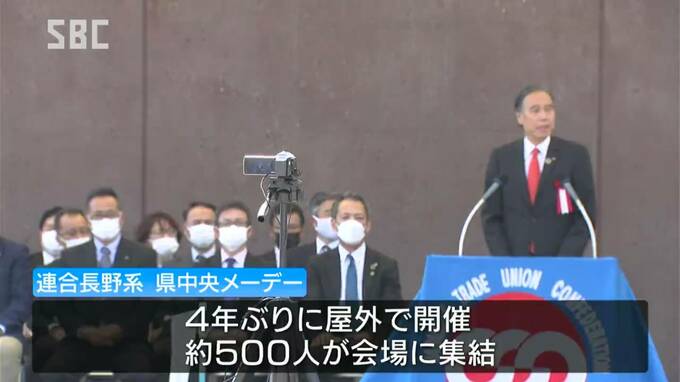 オンラインも含めて1500人が参加した連合系の中央メーデーは、4年ぶりにメイン会場を屋外に移して開かれ、長野市のセントラルスクゥエアにはおよそ500人が集まりました。