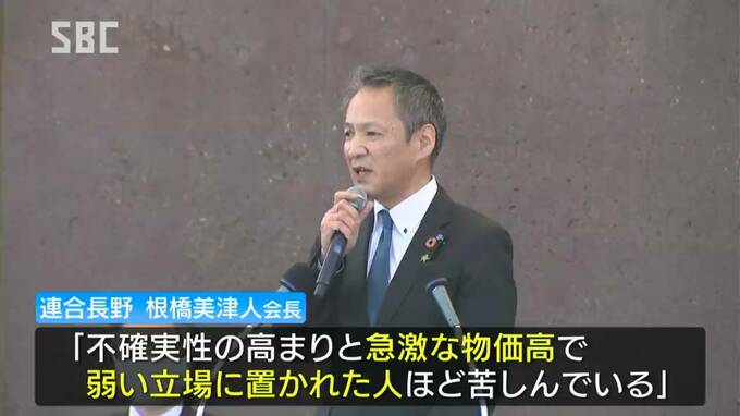 連合長野の根橋美津人(ねばし・みつと)会長は、「不確実性の高まりと急激な物価高が疲弊する暮らしに追い打ちをかけ、弱い立場の人ほど苦しんでいる」と訴え、労働者の連帯を呼びかけました。