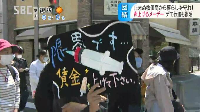 きょう5月1日は労働者の祭典=メーデーです。長野県内でも各地で集会が開かれ、急激な物価高から暮らしを守る賃上げなどを訴えました。「団結がんばろう!」オンラインも含めて1500人が参加した連合系の中央メーデ…