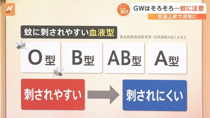 【刺されやすい】O型→B型→AB型→A型【刺されにくい】