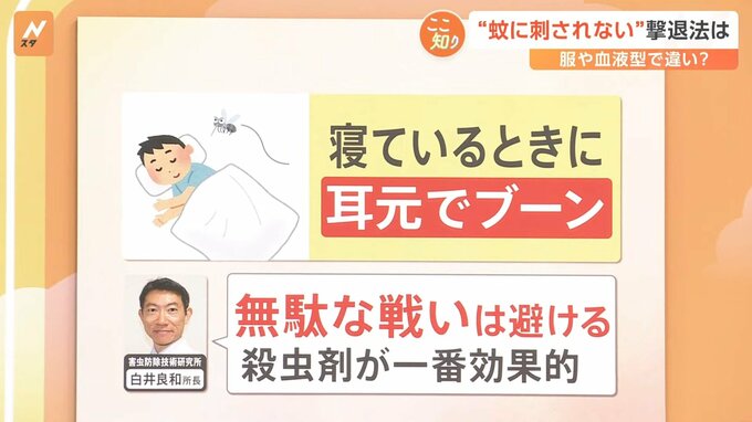 対策というところも見ていきましょう。嫌なのが“寝てるときに耳元でブーン”という事なんですが、白井所長によると一番良いのは…