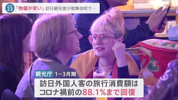 観光庁によると、外国人観光客の消費額はコロナ禍前の約9割まで回復(1~3月期)。久しぶりの訪日旅行で消費意欲が高いことや円安が要因とみられています。