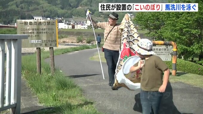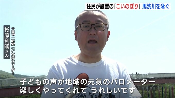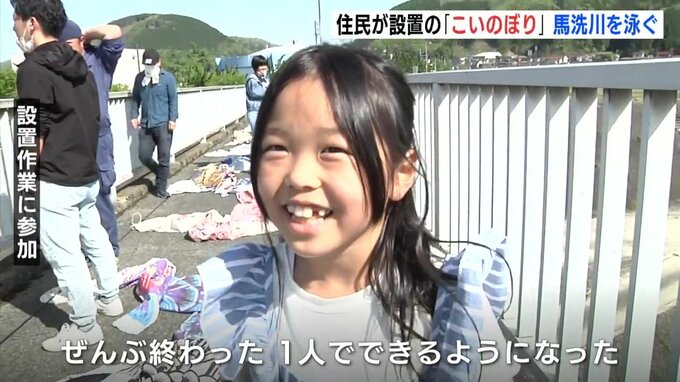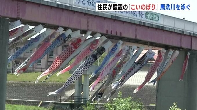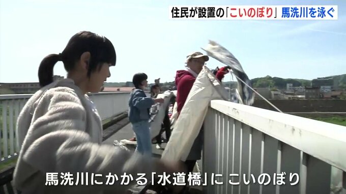 こいのぼりを設置したのは、三次市の十日市一区会のメンバーです。子どもたちと協力して大空に舞うこいのぼりを見てもらおうと、15年前から馬洗川(ばせんがわ)にかかる地元の水道橋にあげてきました。
