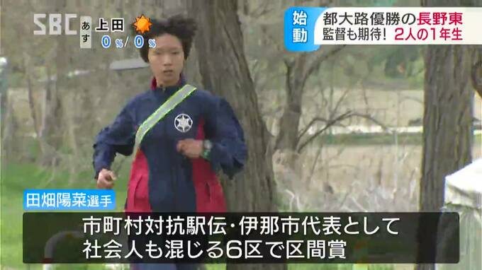 田畑選手は、4月29日に行われた市町村対抗駅伝の伊那市代表として、社会人も混じる6区で区間賞を獲得しています。