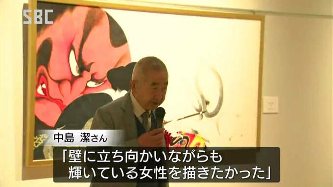 オープニングのきょう(2日)は、中島さん本人が、「壁に向かいながらも輝く女性を描きたかった」と、作品に込めた思いを解説しました。