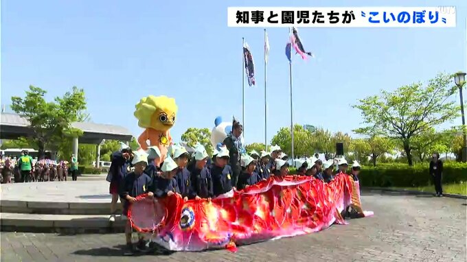 こどもの日を前に濵田省司知事と園児たちがこいのぼりを揚げました。このイベントは5月5日から11日の児童福祉週間に合わせて毎年この時期に行われています。2日は高知市の朝倉中央保育園と南国市のフレンド幼稚園…