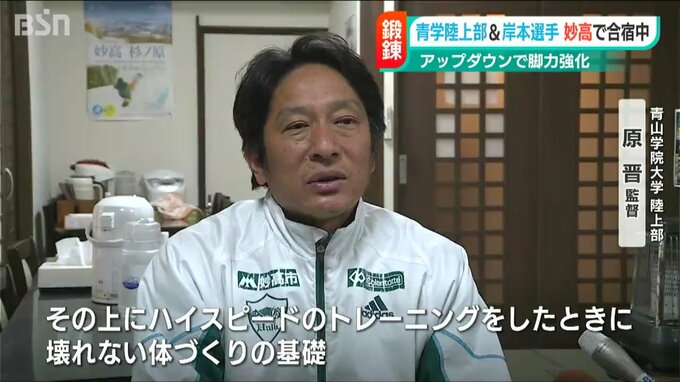 原晋監督率いる青山学院大学陸上競技部の選手が新潟県妙高市で合宿を行っています。青学のOBで燕市出身の岸本大紀選手も一緒にトレーニングに励んでいます。