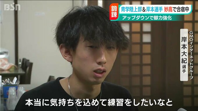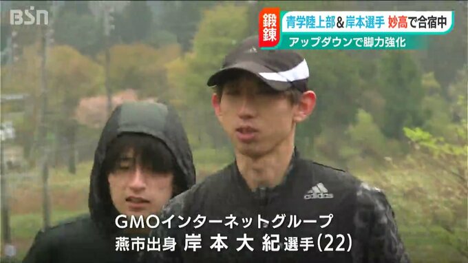 一緒にトレーニングしているのが青学のOBで、「GMOインターネットグループ」に所属する燕市出身の岸本大紀選手です。