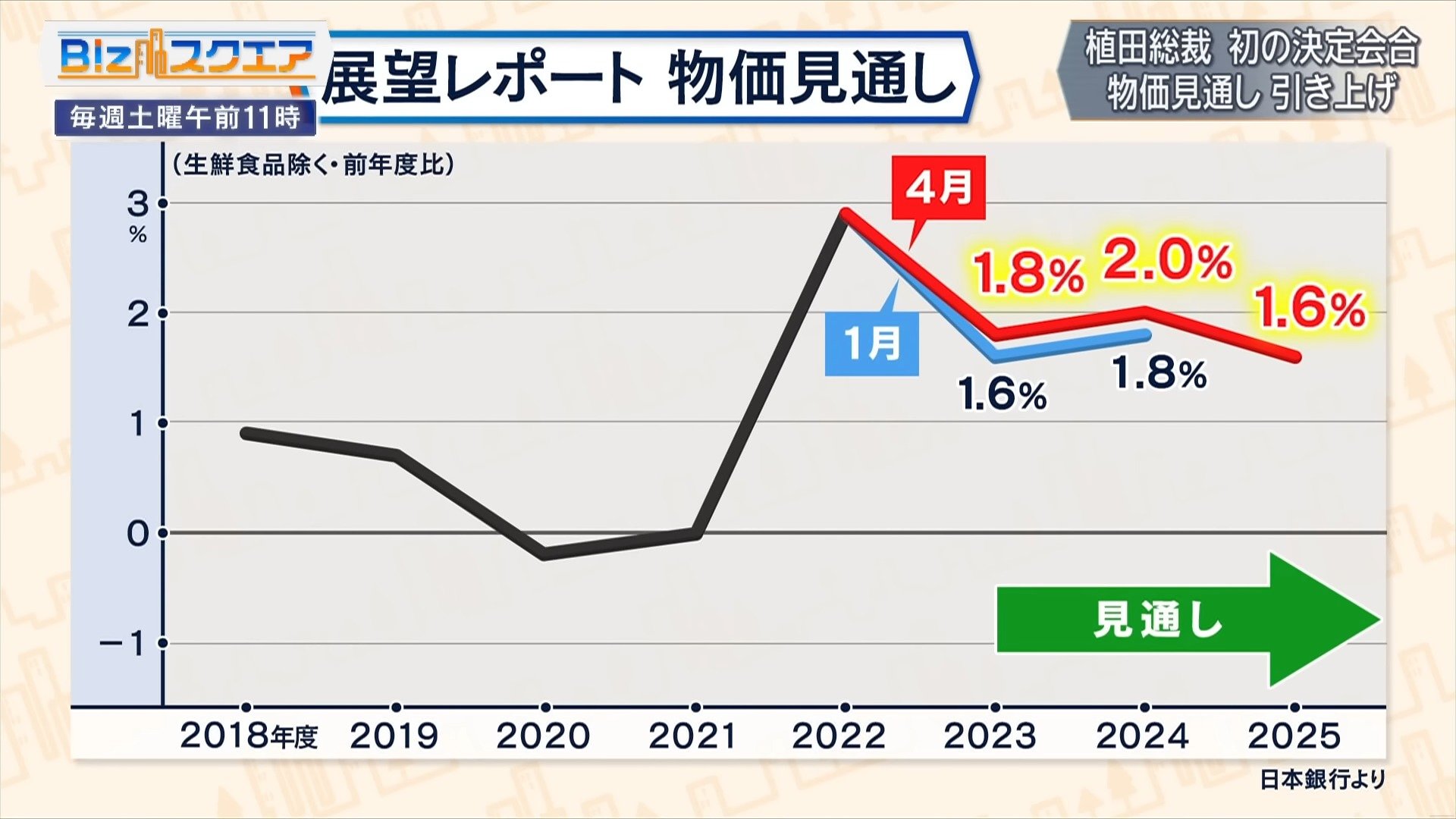 日銀は28日発表した展望レポートで、2023年度と24年度の物価見通しについて、それぞれ1月時点より引き上げた。